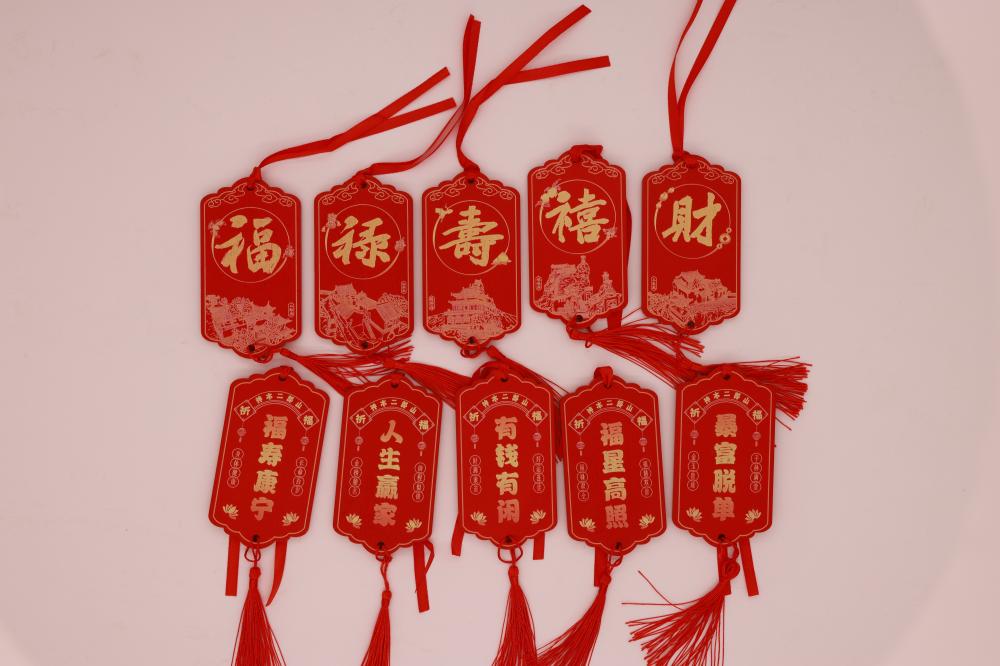匠心打造「十全福运」福牌系列,牌面绘以二郎庙、诸神殿、三教殿、祖师庙、娘娘庙之庙宇山形为底纹,将传统祥瑞与现代祈愿完美融合,一牌一景一福愿。