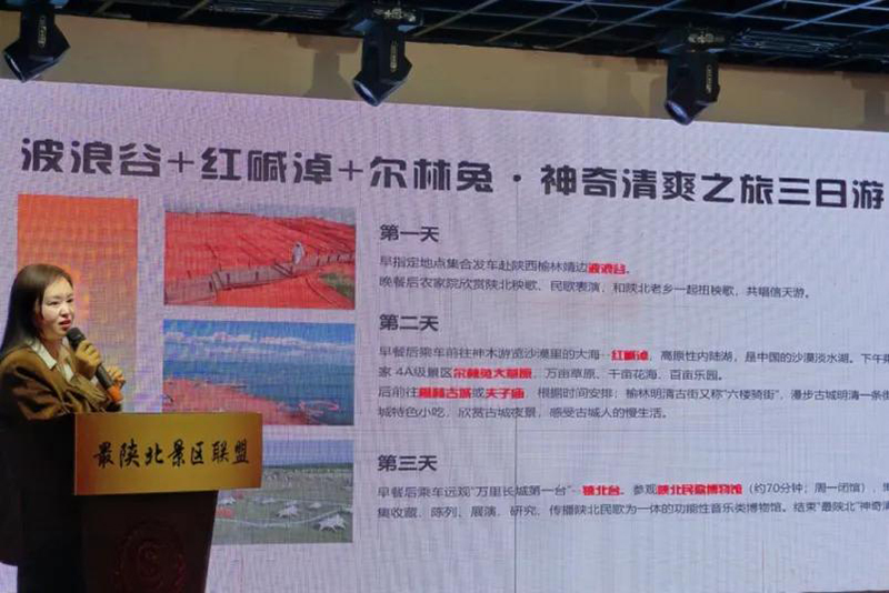 推介环节精彩纷呈,波浪谷景区、甘泉大峡谷景区、陕旅集团延安公司旗下景区等纷纷登台亮相,通过生动的讲解,展示了各自独特的自然风光与深厚的人文底蕴。紧接着,红碱淖旅游度假区、石峁遗址文化旅游区、神木二郎山景区等也逐一呈现,为现场观众带来了一场视觉与心灵的双重盛宴。